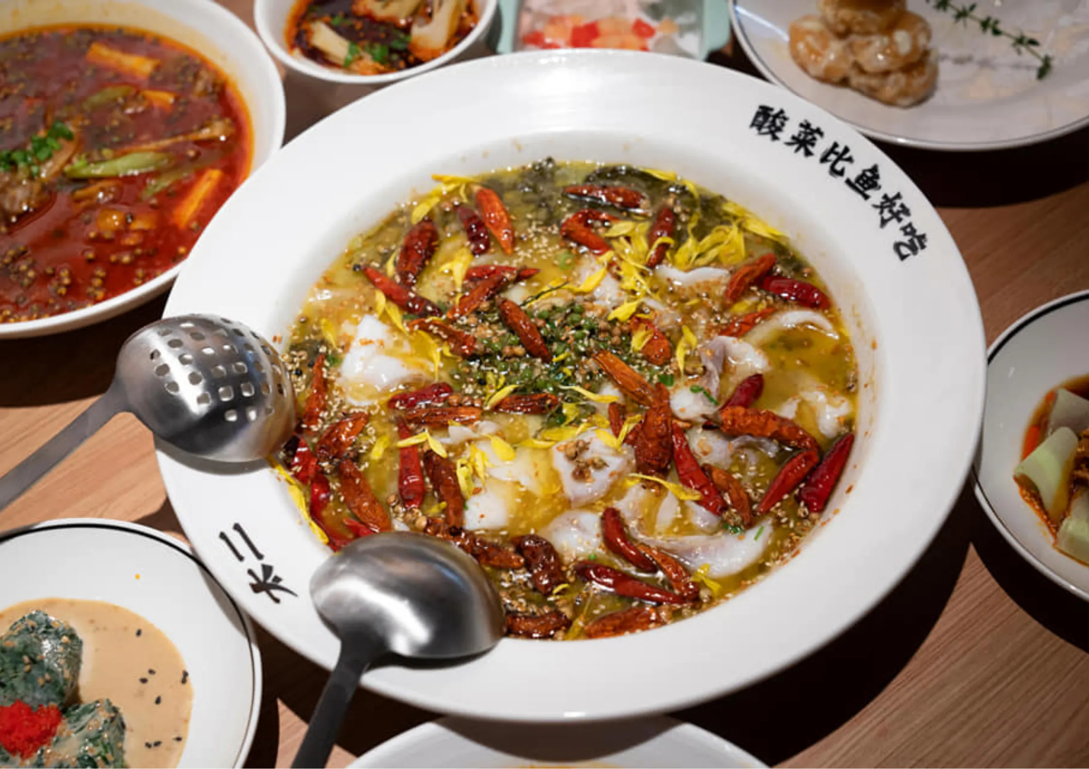 A: TAI ER (#B1-04) serves suan cai yu in a tangy, spicy broth. They've also added Sichuan cuisines to their menu, so it is communal and memorable, which makes it a fun year-end pick.